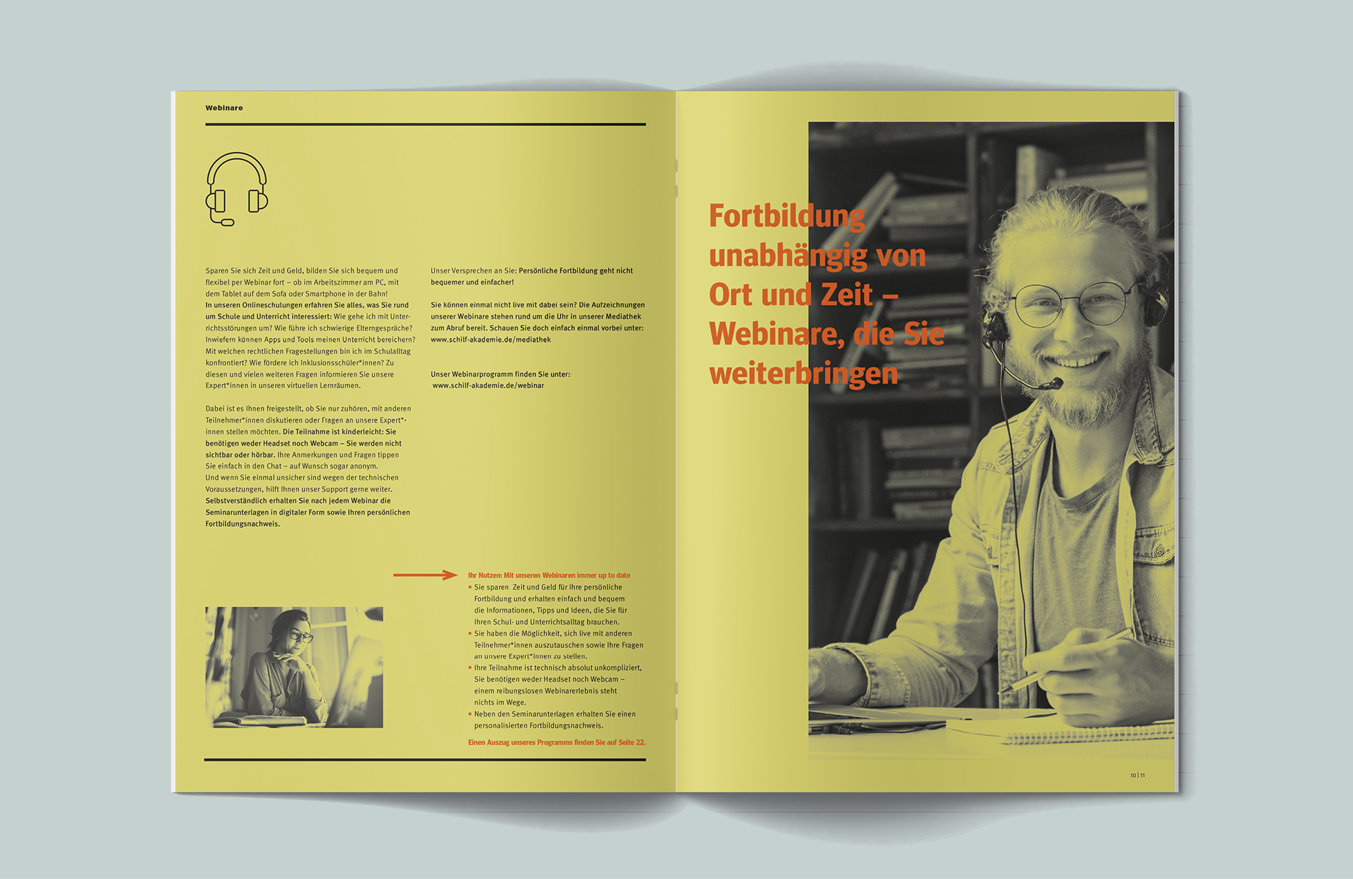 Die SchiLf Akademie bietet ein breit gefächertes, praxisorientiertes Weiterbildungsprogramm zu den Themenkomplexen Schul- und Organisationsentwicklung, Arbeitsorganisation und Kooperation sowie Unterrichten, Fördern, Beurteilen für Schulen. Über fünfzig erfahrene Expert:innen stehen der schulinternen Fortbildung als Referent:innen zur Verfügung. Entwickelt wurde ein neues Corporate Design, dass den Ansprüchen moderner Printmedien und einer wachsenden Digitalisierung gerecht wird. Gestaltet wurde neben des halbjährlichen Gesamtkatalog, Plakate, Flyer und Anzeigen zur Kund:innenansprache, sowie Werbematerialien für Online- und Social Media-Auftritte.